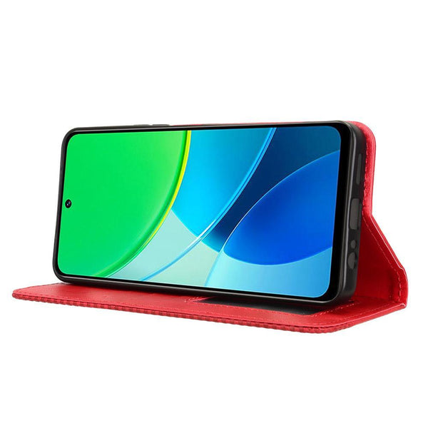 For vivo Y19s 4G Magnetic Buckle Retro Texture Leather Phone Case(Red)