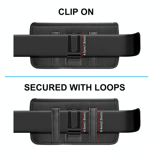 2. The belt loop or clip let you hold this phone holster in a horizontal position on your belt with the durable belt clip, waistband or inside your handbags pocket.