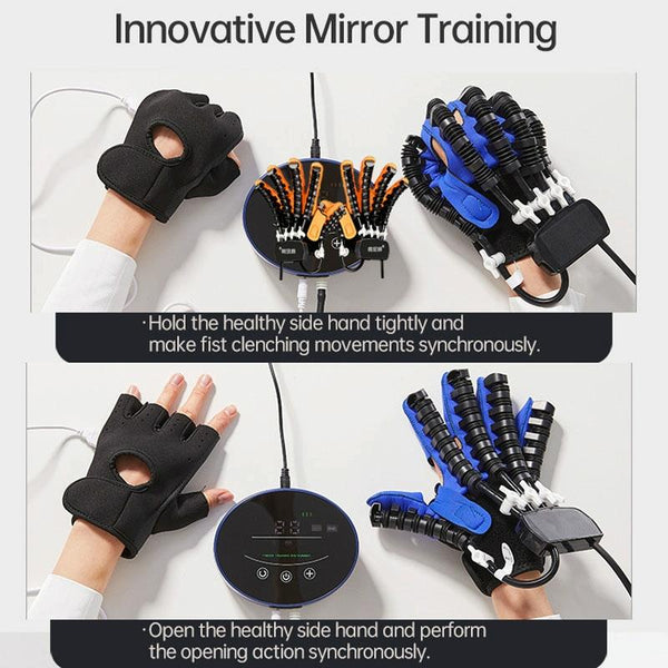 Intelligent Robot Split Finger Training Rehabilitation Glove Equipment With UK Plug Adapter, Size: L(Blue Left Hand)