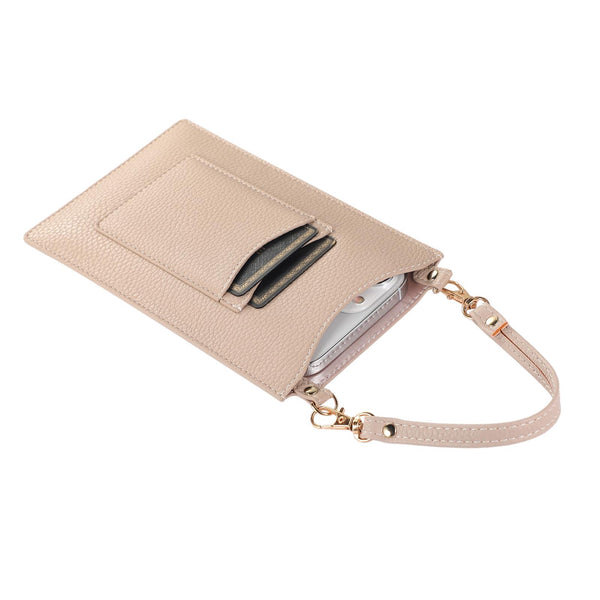 Litchi Texture Card Holder Mobile Phone Bag with Short Strap(Light Blue)