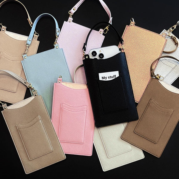 Litchi Texture Card Holder Mobile Phone Bag with Short Strap(Light Pink)