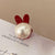 Mini Pearl Hair Clip Side Princess Hair Clip Cute Rabbit Ears Small Grip(Red White)