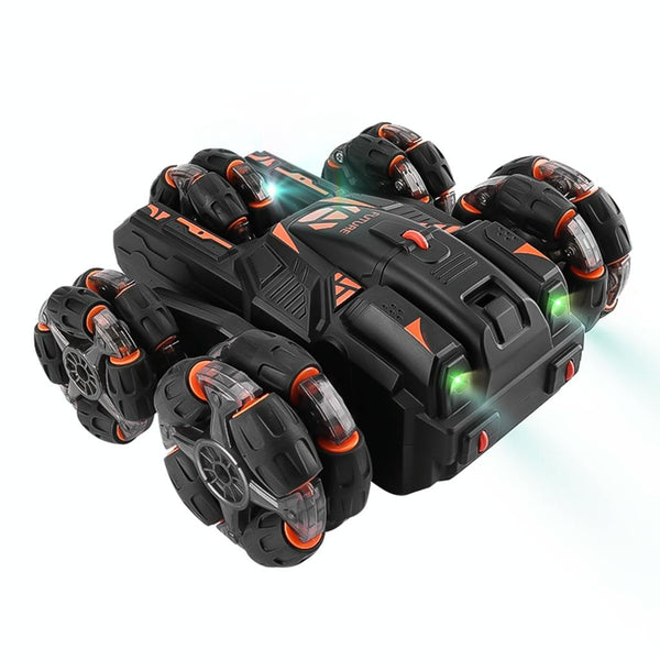 MoFun Five-wheeled Stunt Car 360-degree Swing Arm 2.4G Multifunctional RC Car, specifications:Double control(Black)