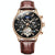 OLEVS 6658 Men Luminous Waterproof Leather Strap Mechanical Watch(Black + Rose Gold)
