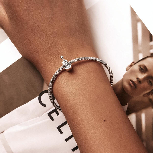 S925 Sterling Silver Retro Violin Beads DIY Bracelet Necklace Accessories