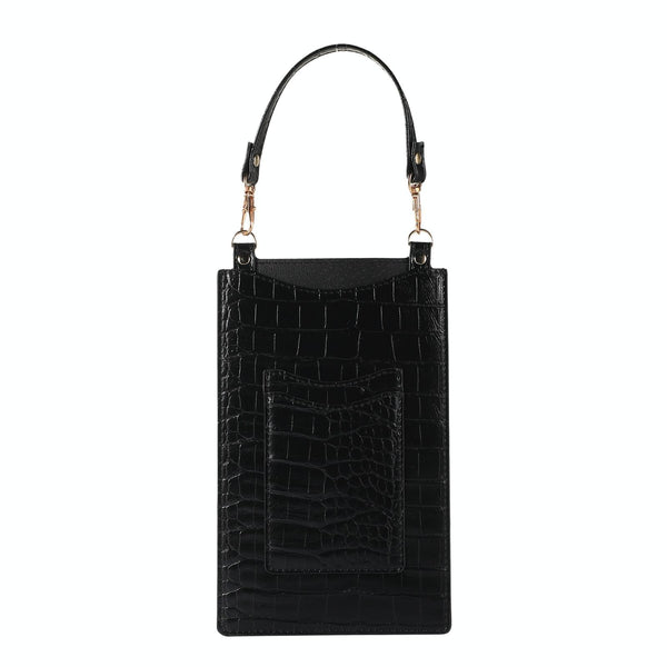 Stone Texture Card Holder Mobile Phone Bag with Short Strap(Black)