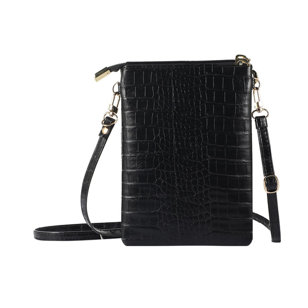 Stone Texture Card Holder Mobile Phone Zipper Bag with Long Strap(Black)