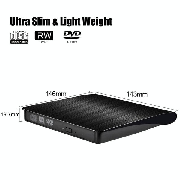 USB 3.0 Brushed External CD / DVD-RW Optical Drive Player