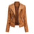 Women Short Leather Jacket Slim Jacket Motorcycle Suit, Size: L(Camel)