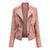 Women Short Leather Jacket Slim Jacket Motorcycle Suit, Size: XXXL(Pink)